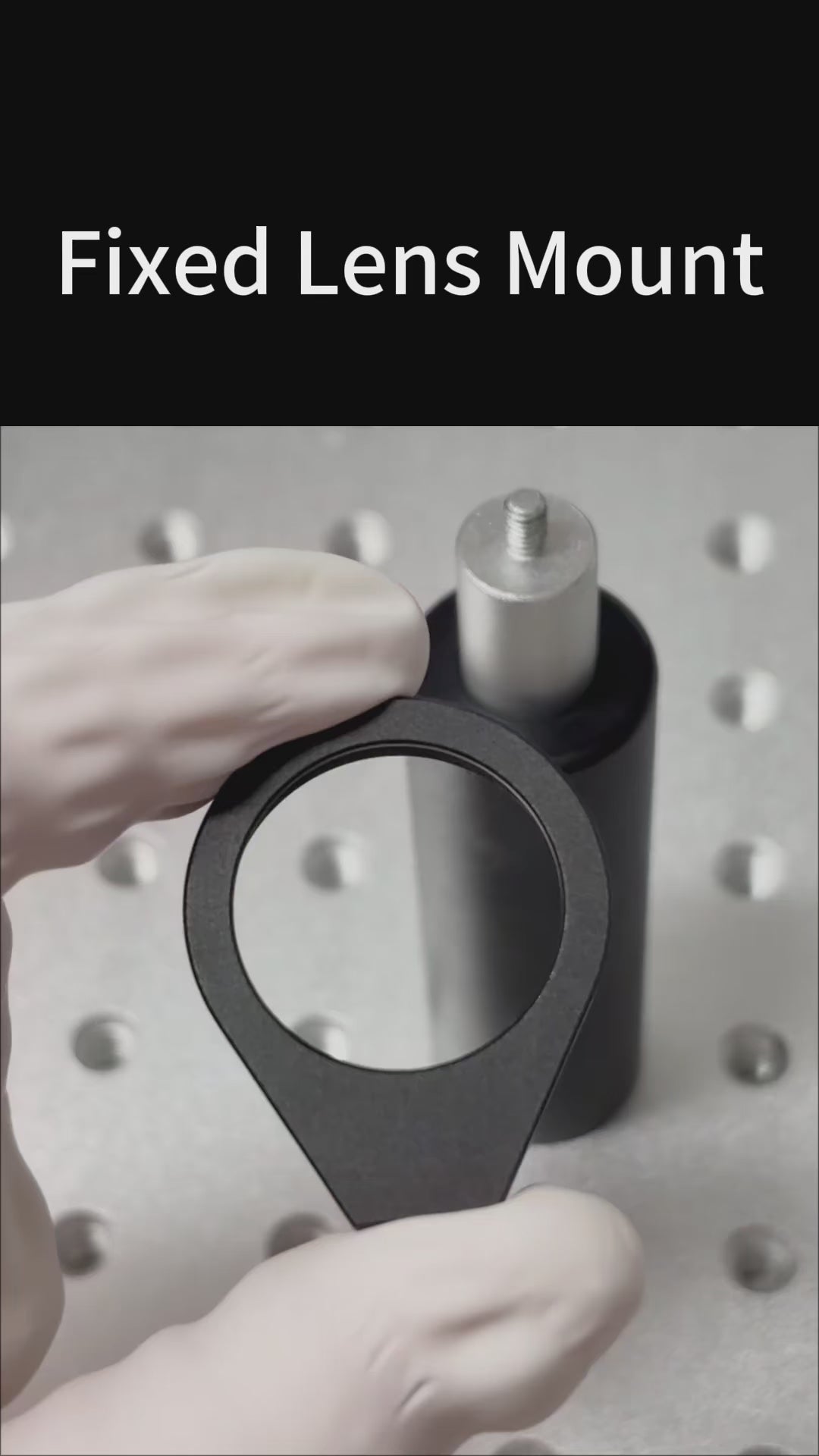 The FLM series fixed lens mounts cover a wide range of clear apertures from Φ5 mm to Φ101.6 mm. They are compatible with circular optical elements of 0.5″–4″ and M5–M45 sizes, and are suitable for imaging, focusing, filtering, and other optical experiments. The front side provides a standard threaded interface, while the bottom is pre-tapped with mounting holes. Each mount is supplied with a retaining ring to allow fast and secure fixing of lenses and filters.